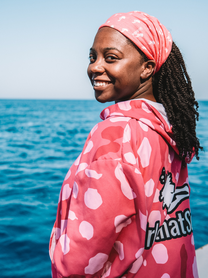 Your solution to changing in/out of your scuba gear is here! Throw on our Girls that Scuba changing robe and take off your swimwear seamlessly without a nip slip in sights. Our poncho comes with a slit either side to slip your arms in to help you change under your poncho. The fast-drying microfibre suede material makes it perfect for any scuba day, light and easy to carry and takes up no space in your bag! It's not only useful as a changing rob; use it as a windbreaker on the boat, to keep you covered from the sun or even use it as a towel. Whatever you use your new Girls that Scuba robe for you are sure to stand out in the whale shark or boxfish pattern!