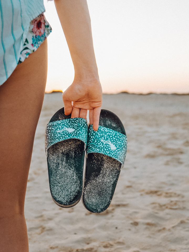 Dive days just got cuter with these whale shark sliders! Perfect for liveaboard and boat days to slip on or off!